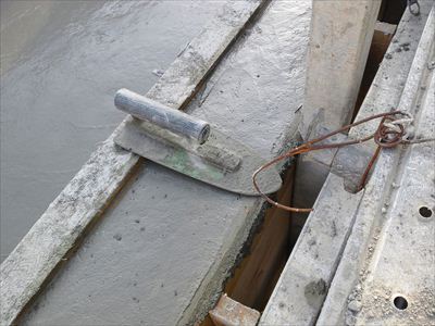 見事な技で、まだやわらかいコンクリートをどんどん つるつるにしていく職人さん。かっこいいですね。