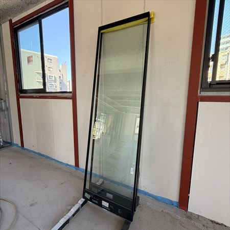 左奥に立てかけてあるガラスは入口の自動ドアになります!