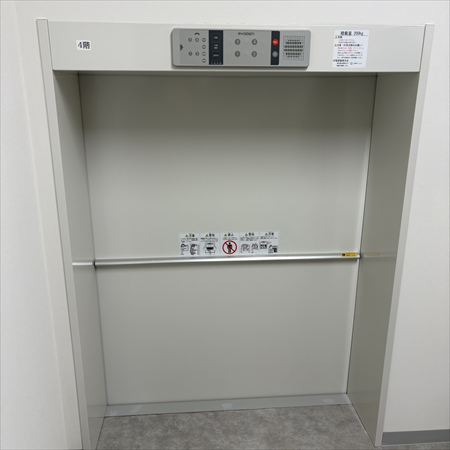 学校や病院などで使われることが多い、小荷物専用昇降機なので人が乗ってはいけません✖