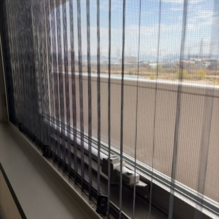 窓の内側に蛇腹織の網戸がありました👀