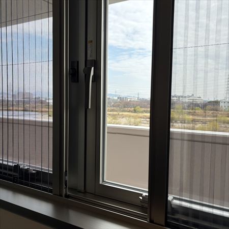 両開き窓なので内側に網戸が設置されてあり、窓を全開にしても邪魔にならないようになっています🙋